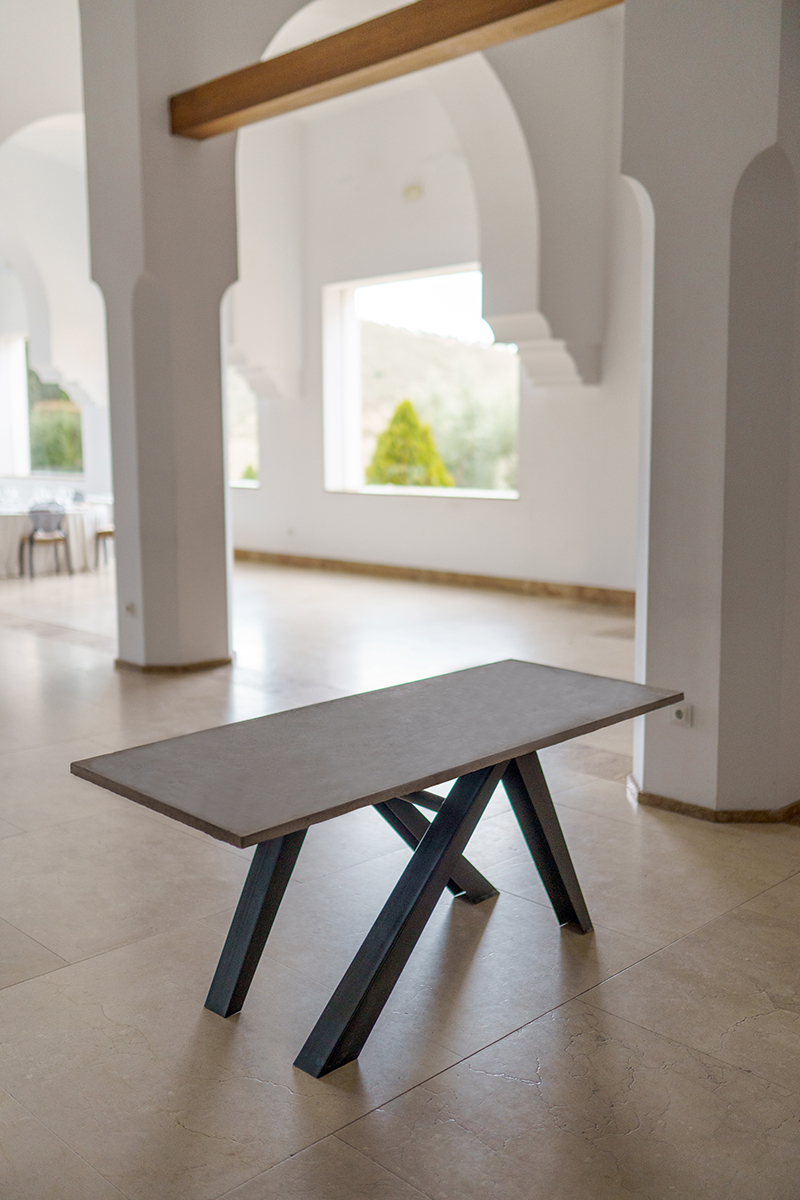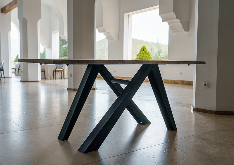Esta mesa presenta un diseño moderno e industrial, combinando materiales robustos y estilizados. Su tablero es de hormigón, ofreciendo una apariencia sólida y minimalista con un acabado liso que resalta su estética contemporánea. Las patas de la mesa están fabricadas en hierro y tienen una disposición en forma de «X», lo que no solo proporciona una base firme y estable, sino que también añade un toque dinámico y elegante al diseño. La combinación de estos materiales crea una pieza versátil, ideal para espacios modernos, industriales o rústicos con un enfoque en la durabilidad y el estilo sofisticado.